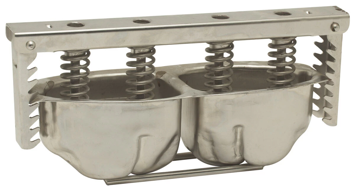 De getande klembeugels vergrendelen zichzelf terwijl de veren ervoor zorgen dat er gedurende het kookproces er voldoende druk op de ham blijft als deze slinkt.