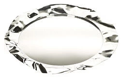 Deze Foix schaal van Alessi is van gepolijst 18/10 roestvrij staal en heeft een diameter van 44 cm. Ontworpen door Llus Clotet in 1994, waarbij de randen gebaseerd zijn op de manier waarop aluminiumfolie kreukt.