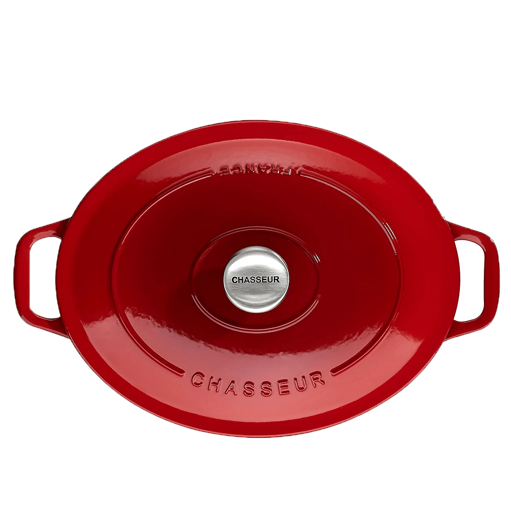 De Oldenhof by Chasseur braadpan is vervaardigd uit rood, geëmailleerd gietijzer en heeft een matzwarte binnenzijde. De ovale pan heeft een lengte van 31 cm en een inhoud van 6 liter. Hiermee is de pan geschikt voor het maken van gerechten voor 6-8 personen, bijvoorbeeld voor soepen of stoofgerechten. De ovale vorm maakt de pan uitermate geschikt voor het bereiden van langere braadstukken. De Chasseur braadpan is geschikt voor gebruik op alle warmtebronnen, inclusief inductie en de oven.
