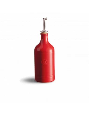 Met de Emile Henry olie- of azijnfles bewaart en serveert u uw kostbare olijfolie en azijn op zeer luxe wijze. De kan heeft een inhoud van 450 ml, is gemaakt van rood keramiek en voorzien van een roestvrijstalen schenktuit. Gebruik de Emile Henry olie- of azijnfles voor het doseren en serveren van olie of azijn.