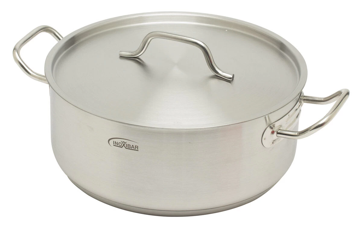 De inductiegeschikte Inoxibar kookpan is gemaakt van roestvrij staal en heeft een diameter van 30 cm. Inclusief de grepen is de pan 42 cm breed. De pan met een ingekapselde aluminium bodem heeft een inhoud van 8,5 liter en wordt geleverd met deksel.