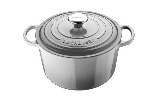 De mist grey, grijze, braadpan van Le Creuset heeft een diameter van 24 cm. De ronde pan van geëmailleerd gietijzer heeft een inhoud van 5,3 liter, geschikt voor 4 personen. De braad-/ stoofpan heeft extra grote grepen. De ronde vorm en ruime inhoud maakt de pan ook perfect geschikt voor de bereiding van soep.