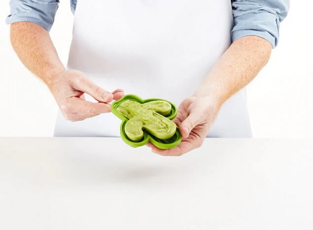 Gebruik de siliconen ijsvorm voor het maken van heerlijke ijslollies voor de warme dagen. Het siliconen materiaal heeft goede anti-kleef eigenschappen en verdraagt temperaturen van -60 tot 220°C. Vul de ijsvorm met de ingrediënten en water en zet de vorm in de vriezer.