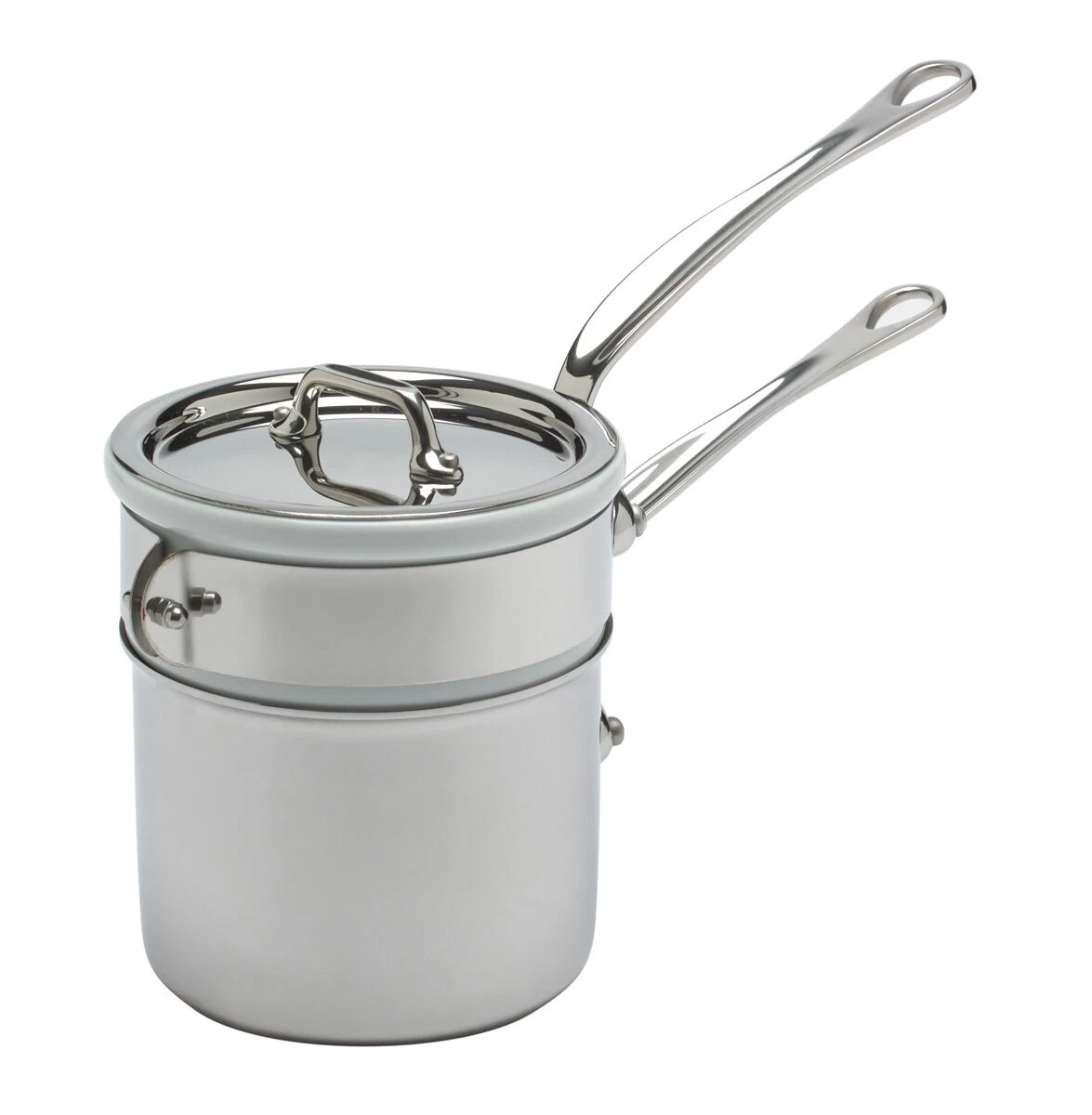 De Mauviel M’cook au bain-mariepan is van 5-laags roestvrij staal met aluminium. De sandwichconstructie zorgt voor een optimale warmtegeleiding door de pan. De inzet is van porselein. Hierdoor worden de ingrediënten langzaam verwarmd.
