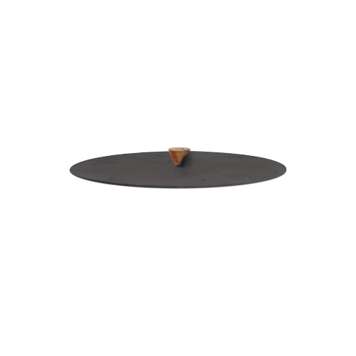 De OFYR doofdeksel heeft een diameter van 90 cm en is gemaakt van Cortenstaal. De zwarte deksel zal na verloop van tijd door weersinvloeden oranje kleuren. Gebruik de deksel op de OFYR XL barbecues met een diameter van 150 cm.