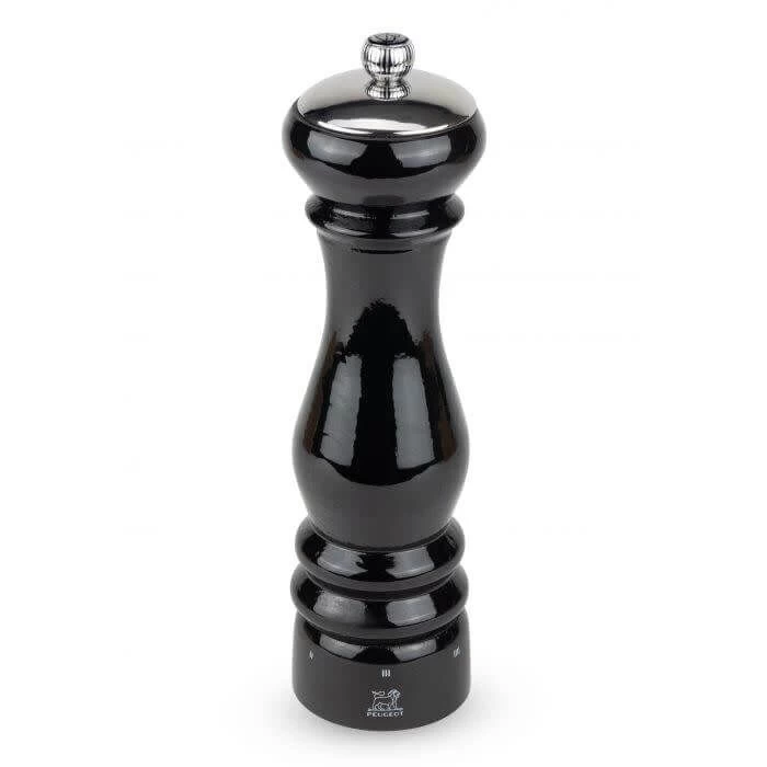 De Peugeot Paris Icône Noir pepermolen heeft het klassieke Peugeot model dat is herzien. De molen is gemaakt van zwart gelakt beukenhout. Aan de bovenzijde heeft de molen een roestvrijstalen kap. Hierdoor krijg de 22 cm hoge molen een moderne uitstraling. Het maalwerk in de molen is vervaardigd uit roestvrij staal. De molen is voorzien van u-select, waarmee u de grofheid van de korrel traploos kunt instellen. Op de metalen draaiknop bovenop bevindt zich de het logo van Peugeot.