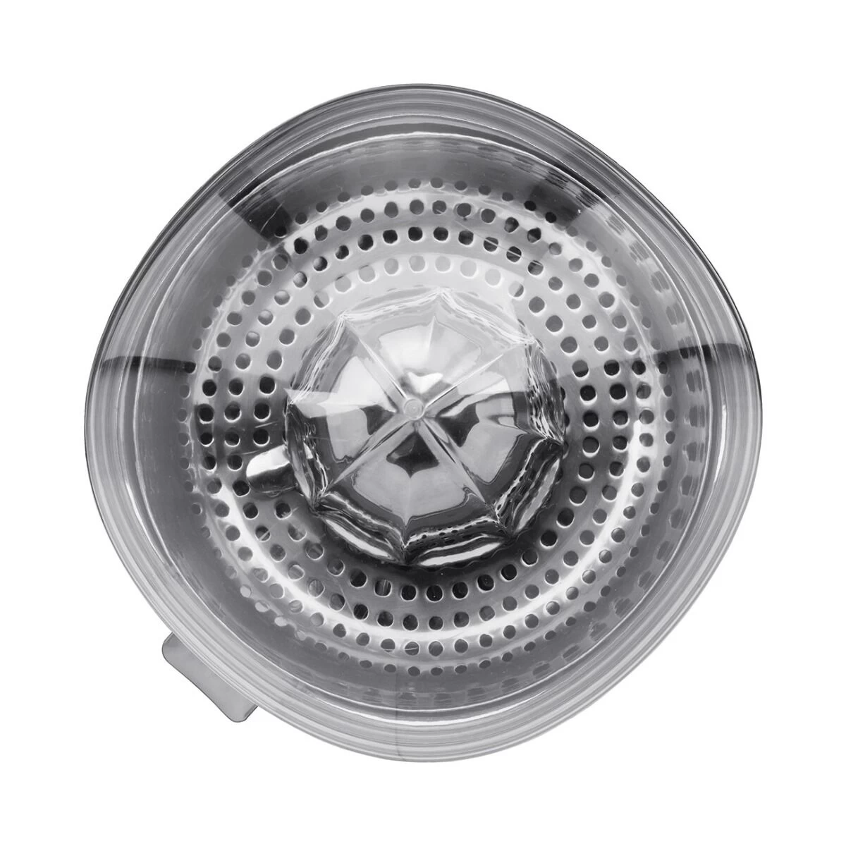 Het sap wordt via de inklapbare schenktuit met druppelstop opgevangen. De elektrische citruspers is uitgevoerd met een speciale opbergruimte voor het netsnoer onder in de behuizing en is voorzien van antislipvoetjes aan de onderzijde.