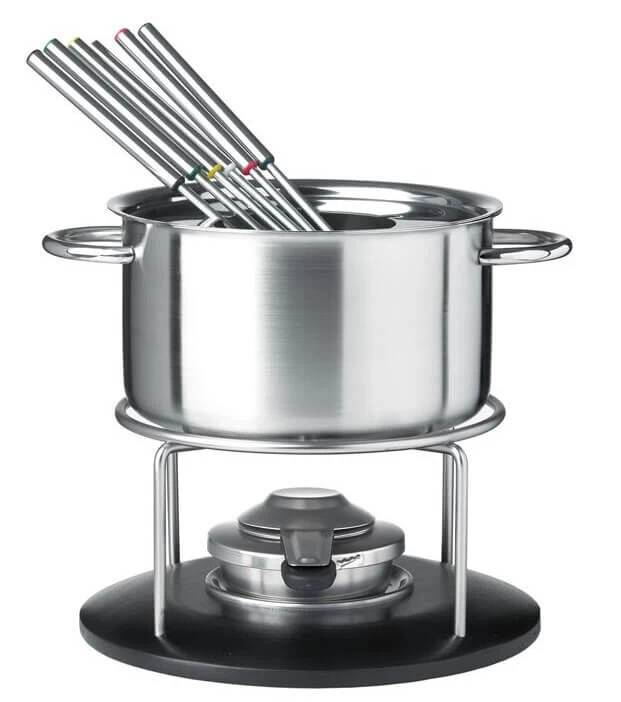 Gebruik de Spring fondueset om tot 6 personen mee te fondueën. De vorken hebben elk een eigen kleur om ze gemakkelijk te kunnen herkennen. Door de gemakkelijke bediening van de gelbrander is de temperatuur van de fondue gemakkelijk te regelen.