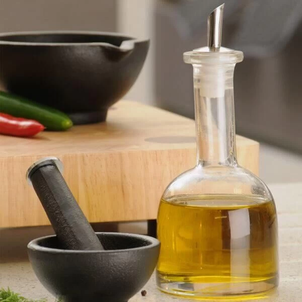 Dankzij de elegante vormgeving en het transparante glas, is de oliefles een prachtig product in uw keuken. Het materiaal is gemakkelijk te reinigen en smaak, geur en voedingsstoffen blijven langer behouden. Reinig de Typhoon oliekan met heet water en een milde zeep.