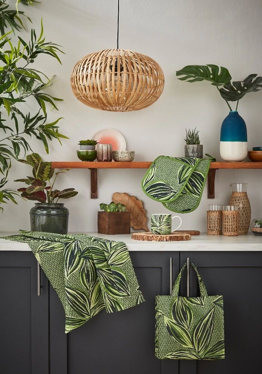 De Geo Leaves ovenwant van Ulster Weavers is vervaardigd van katoen en voorzien van een polyester vulling voor isolatie. Gebruik de ovenwant om hete pannen van het fornuis of uit de oven te pakken. Het ontwerp is gebaseerd op bladeren, op een groene ondergrond. De ovenwant is 37 cm lang en 20 cm breed.