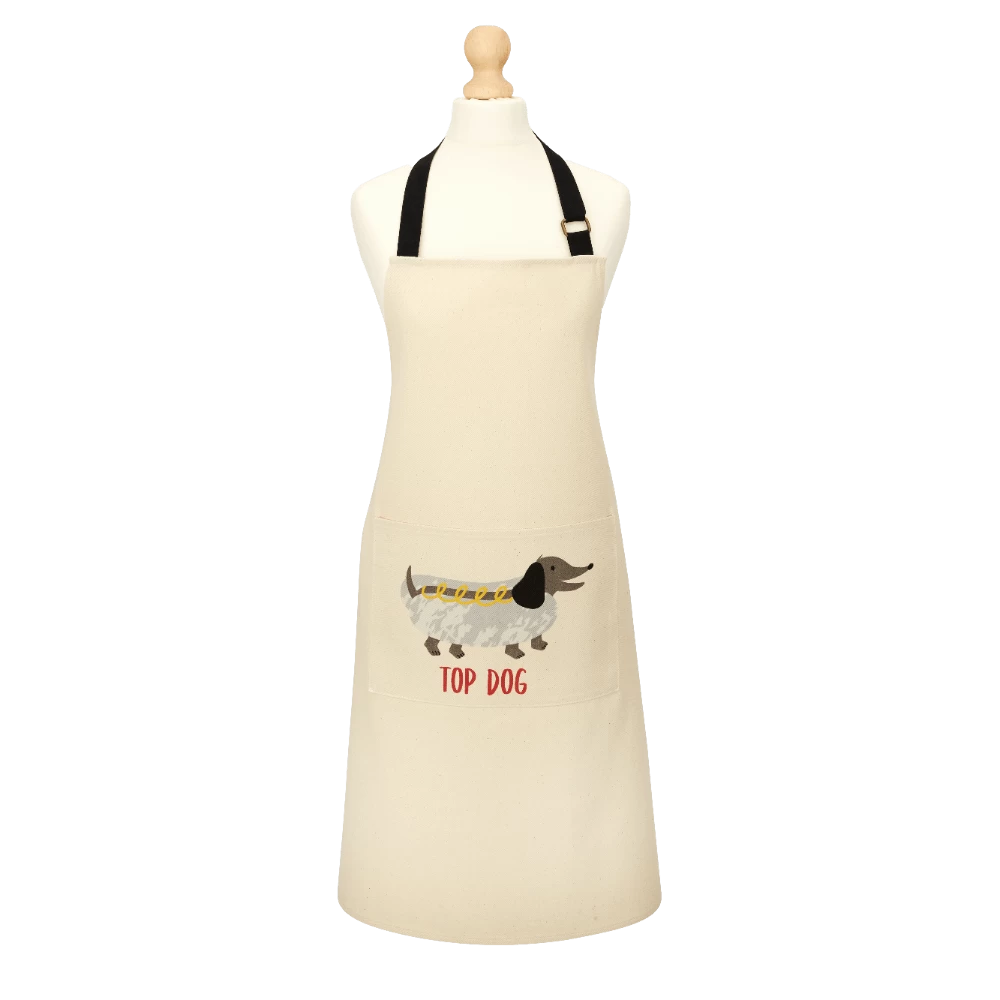 Het Ulster Weavers Top Dog BBQ schort is gemaakt van katoen. Gebruik het schort om uw kleding tegen spetters en vlekken te beschermen. Het Top Dog BBQ schort is voorzien van een afbeeldingen van een hond als hot dog met een beige ondergrond. Het schort is 95 cm lang en 70 cm breed.