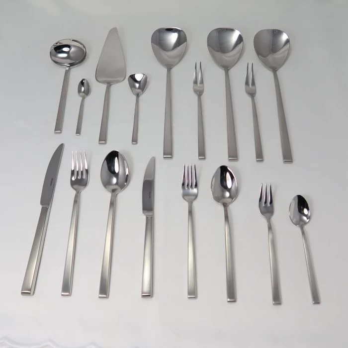 De Cantone serie van het Duitse merk Wilkens is eenvoudig, strak en tijdloos. Dit ontwerp is geïnspireerd op de stijlvolle architectuur uit de Art Deco-periode. Deze serie kenmerkt zich door een combinatie van een matte onderkant en een gepolijste bovenkant. Het recht gesneden heft heeft afgeronde hoeken. De bestekset is gemaakt van 18/10 edelstaal. Dit maakt het bestek zeer duurzaam, maar ook praktisch en geschikt voor dagelijks gebruik. Deze set bevat bestek voor 9 personen.